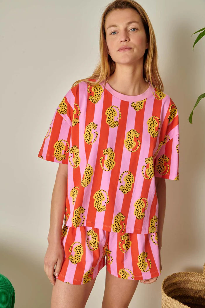 T-shirt oversize, short bien coupé, coton bio doux mais costaud : le combo rêvé pour chiller, dormir, danser dans la cuisine ou finir la saison en une nuit (oui, encore).