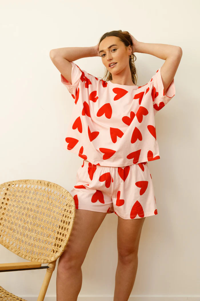 Offrez-vous une nuit de sommeil irréprochable avec notre pyjama en coton bio Mi Amor Rose. L'ensemble comprend un tee-shirt oversize et un short taille élastique pour un confort maximal.