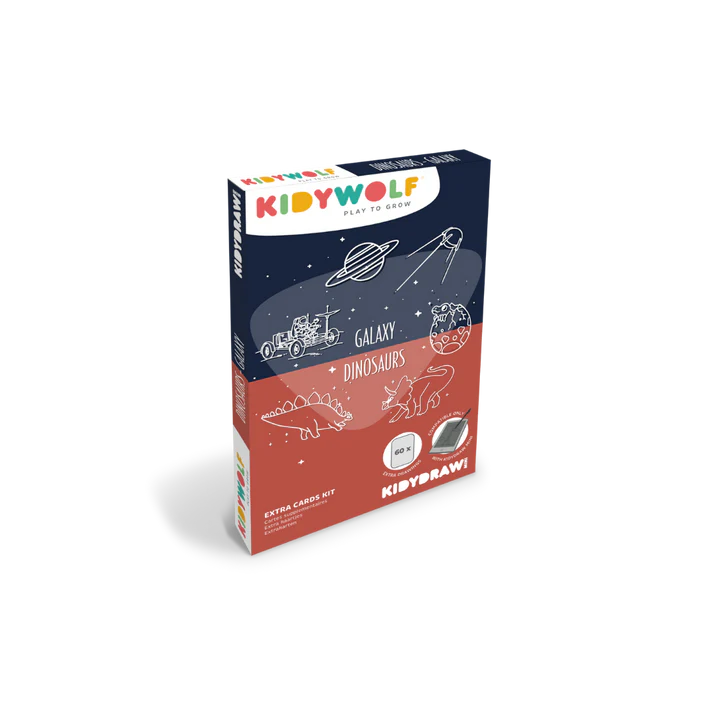 La recharge KIDYDRAW-MINI Galaxie & Dinosaures invite les enfants à voyager à travers le temps et l’espace. Des planètes lointaines aux créatures préhistoriques fascinantes, chaque carte est une porte ouverte sur l’imaginaire. Une aventure graphique entre étoiles scintillantes et rugissements de T-Rex