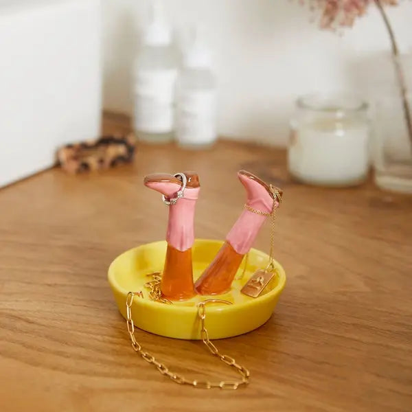 Gardez vos bagues en sécurité avec ce porte-bagues céramique Happy Legs Dance.