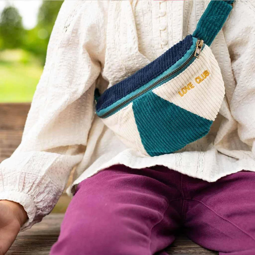 Douce, joyeuse et pensée pour suivre les aventures des plus petits, la Banane Pétrole Chamaye est l’accessoire idéal pour ranger trésors, doudous miniatures et trouvailles du quotidien. Confectionnée en velours côtelé à la texture chaleureuse, elle séduit par sa jolie broderie Love Club qui apporte une touche tendre et malicieuse à chaque tenue.