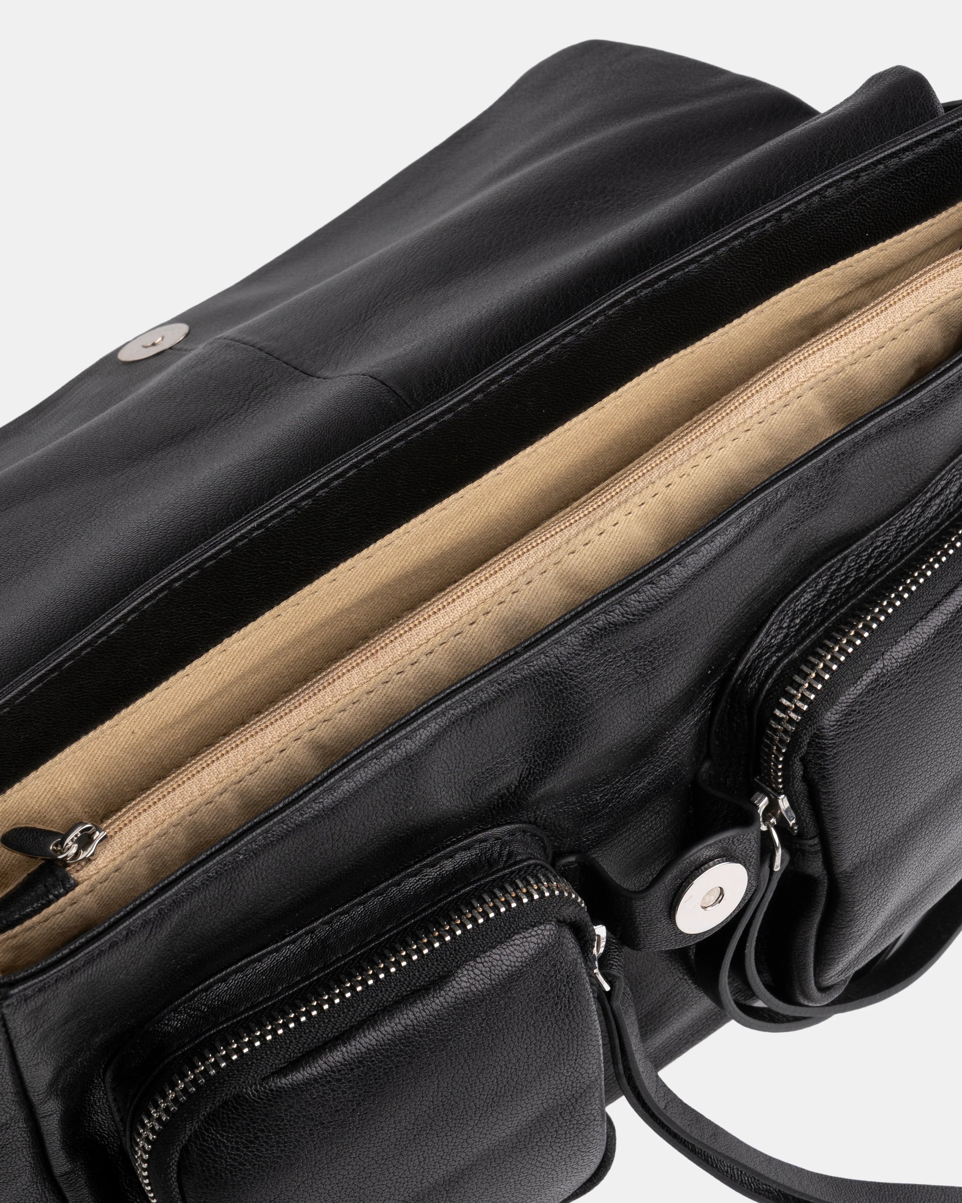 Icône en devenir, le Max est le nouveau sac signature de Neuville. Avec son design affirmé, ses poches extérieures zippées et son format spacieux, il conjugue esprit urbain et fonctionnalité. Polyvalent grâce à ses trois sangles interchangeables, il s’adapte à toutes tes journées — du bureau à l’apéro, toujours avec une touche rock chic.