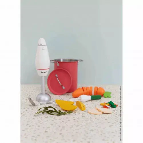Grâce à ce jeu et à ses accessoires réalistes, votre enfant vous accompagnera dans l'élaboration de délicieuses soupes ! On adore le mixer plus vrai que nature !