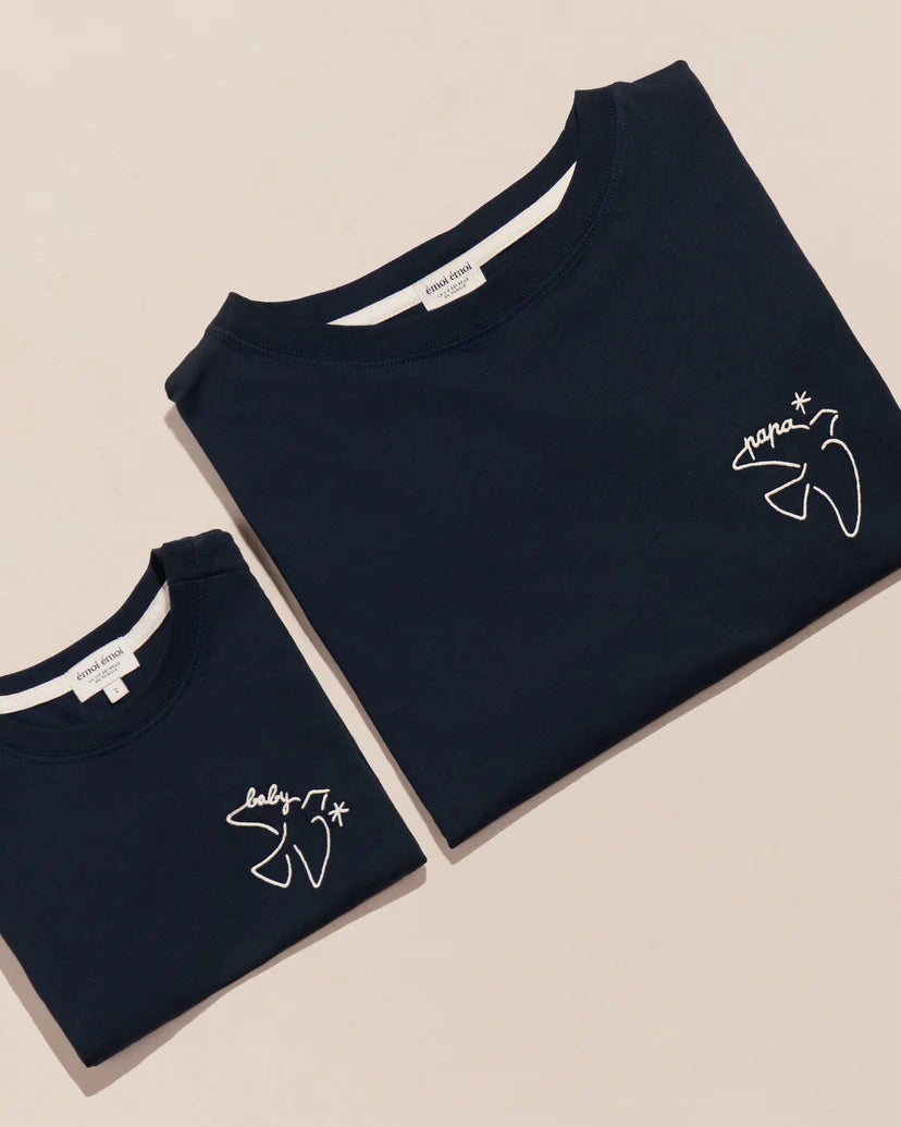 Le t-shirt Baby Bird enfant en coton bio - charbon par Emoi Emoi, c’est une invitation à prendre son envol. Un petit oiseau brodé sur le cœur, pour rappeler que l’amour donne des ailes 🕊️