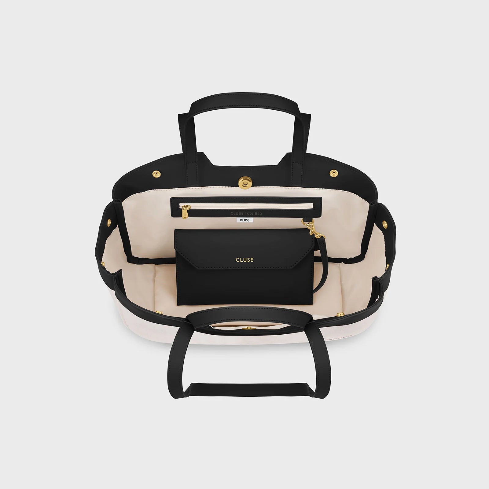 Le Tote Bag Petite CLUSE beige et noir, c’est le parfait équilibre entre élégance, praticité et engagement responsable.