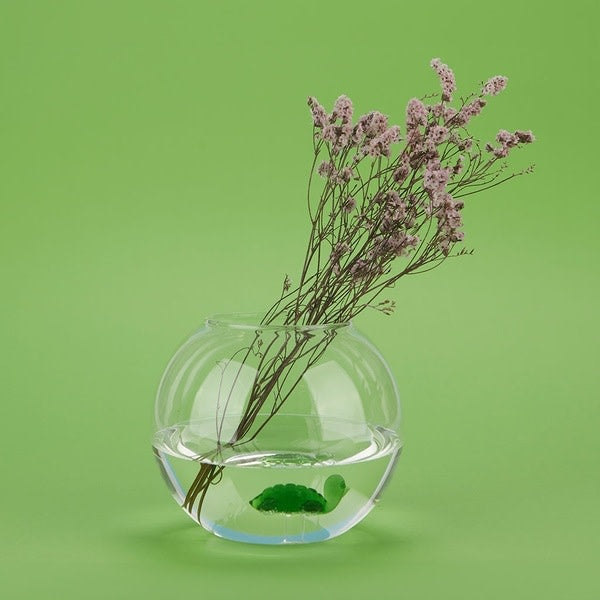 Pratique et esthétique, ce vase vous permettra de mettre en valeur vos fleurs préférées tout en ajoutant une touche ludique à votre espace. Grâce à sa conception soignée, la tortue en verre semble nager élégamment à l'intérieur du vase, créant ainsi un effet visuel captivant.