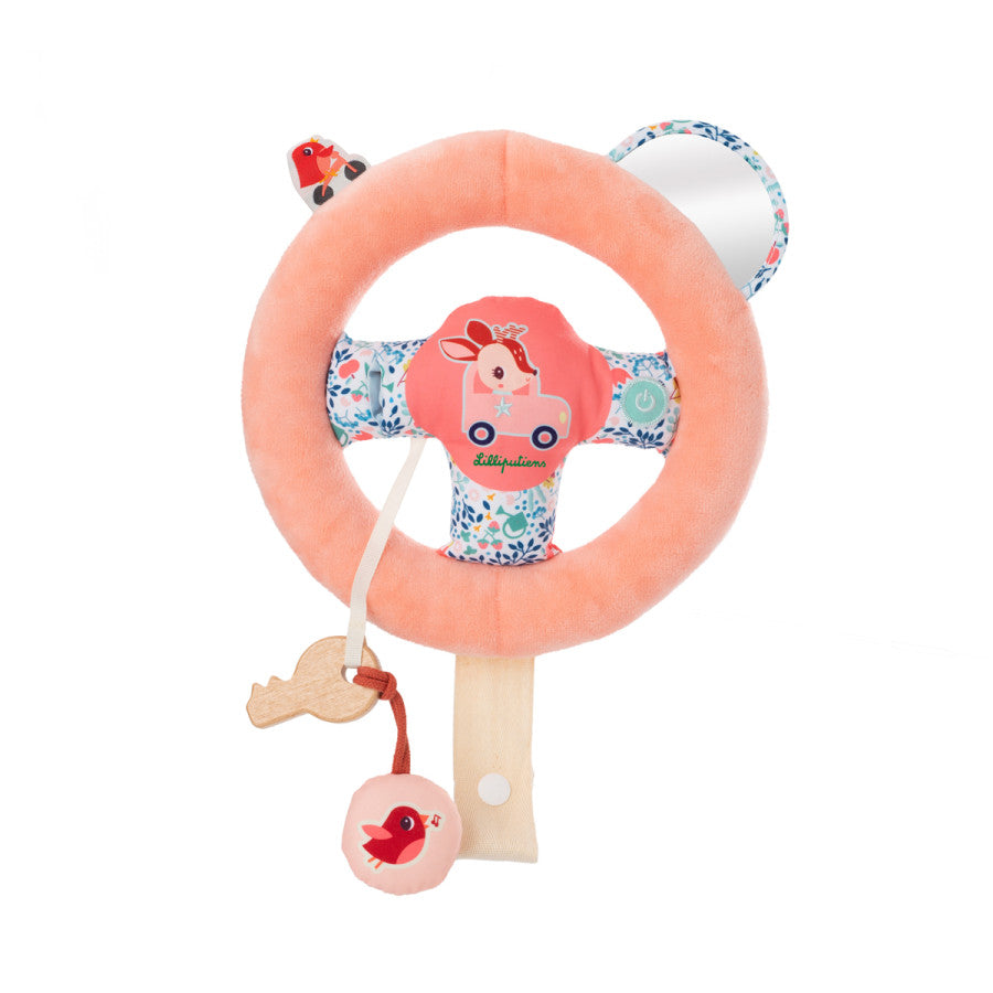 Attachez ce volant amovible Stella à la ceinture du siège-auto et votre enfant va conduire tout comme vous !